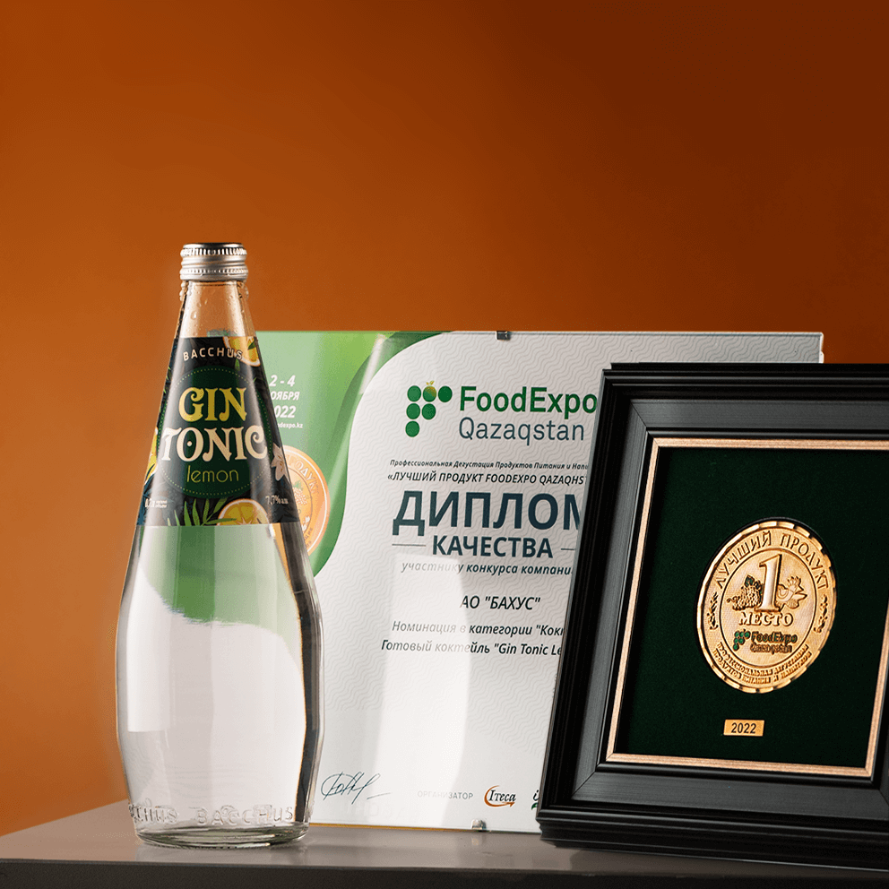 По итогам конкурса завод АО «Бахус» стал заслуженным обладателем двух золотых медалей и дипломов качества в номинациях «Крепкие алкогольные напитки» и «Коктейли». Наши призеры: готовый коктейль «Gin Tonic Lemon», 07 и казахстанский коньяк выдержанный «Bacchus 1948», 05.